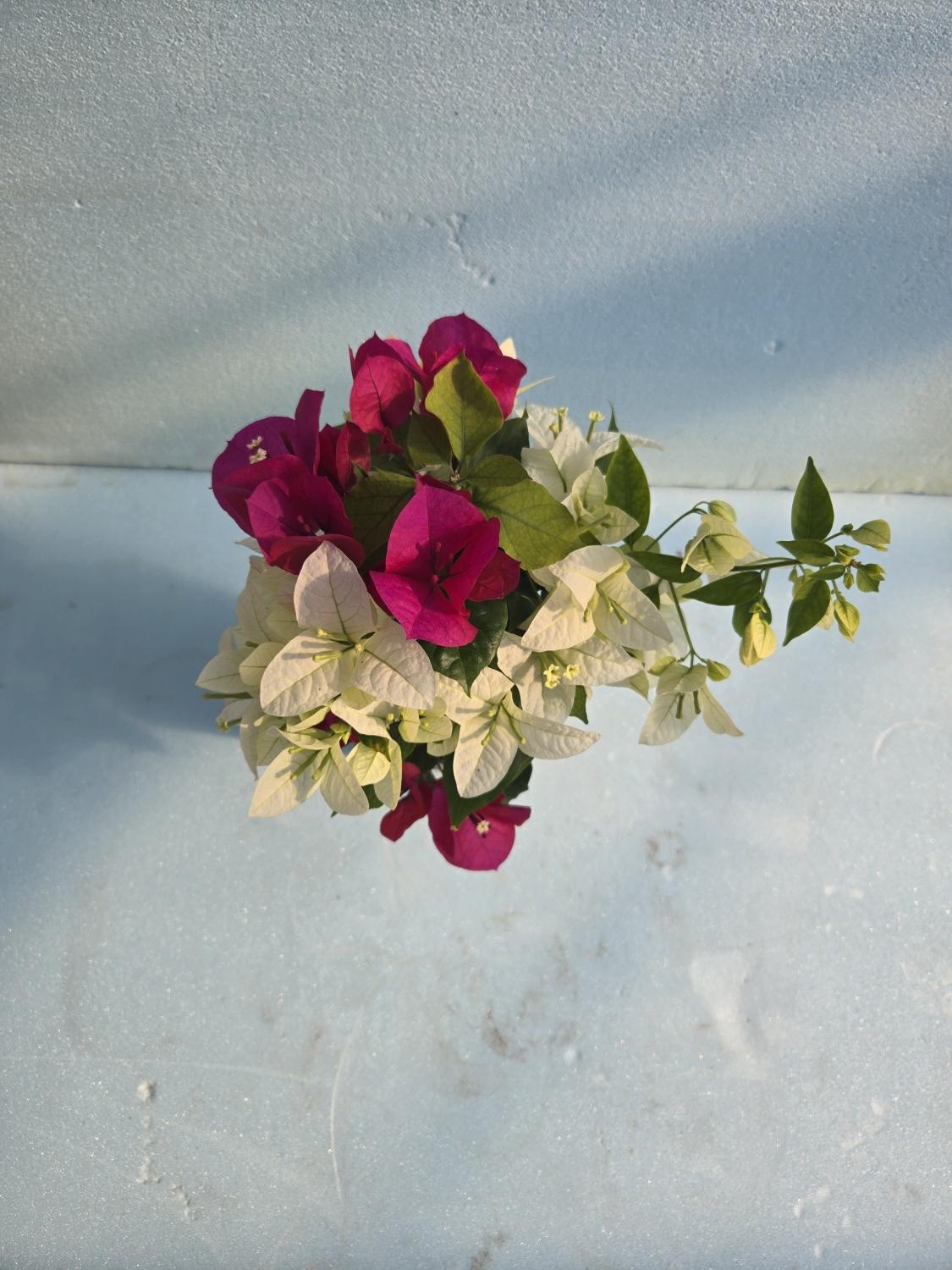 大輪大型種花持ちの良い希少種で花色は赤紫P色で星の様にキラキラ輝く白い花(萼ガク)がとても美しく長寿命で、シンガポール白とのコラボによって上品な紅白に、ジューンブライドに最適な商品に確立。新技術導入により優良商品に確立しました。